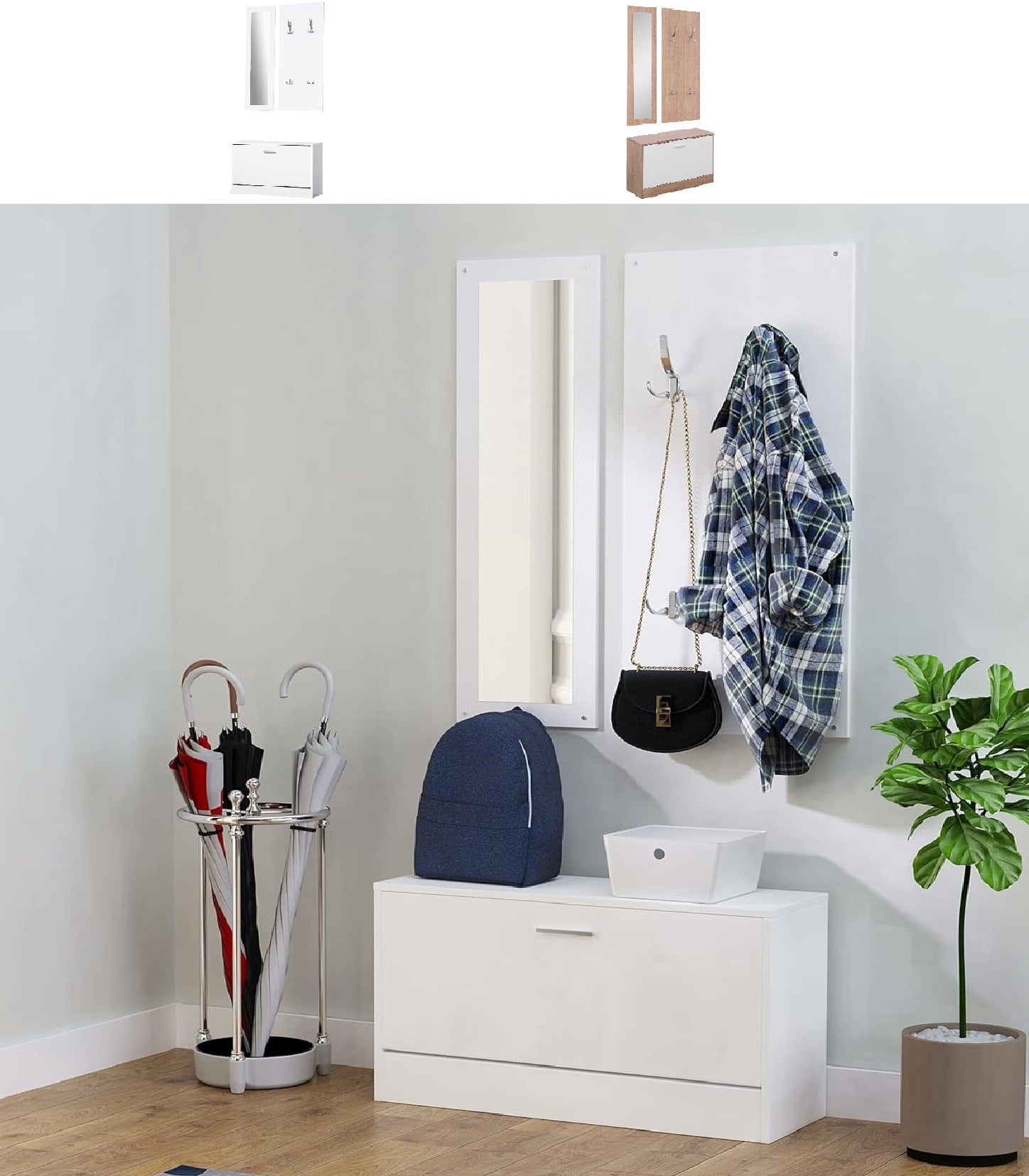 mobile ingresso entrata in legno con specchio scarpiera appendiabiti attaccapanni bianco o legno T66837-006WTD55