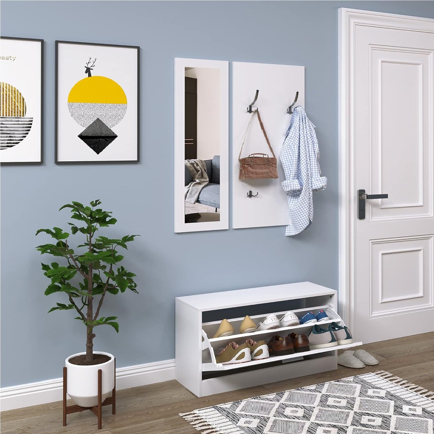 - • Set 3 pezzi composto da 1 scarpiera, 1 specchio e 1 appendiabiti