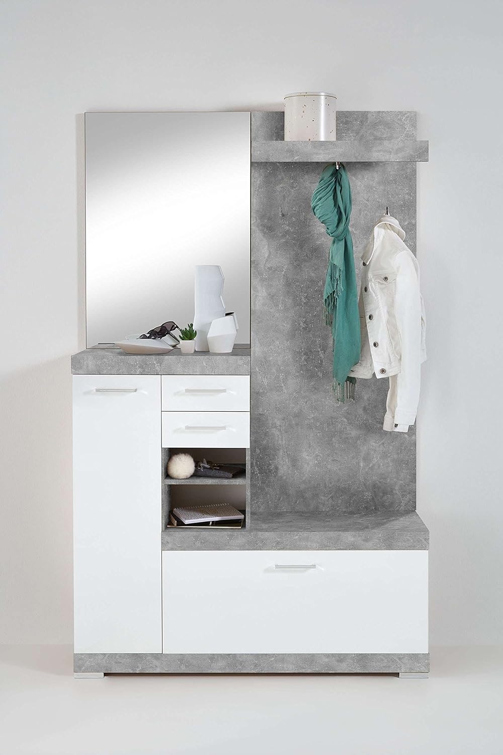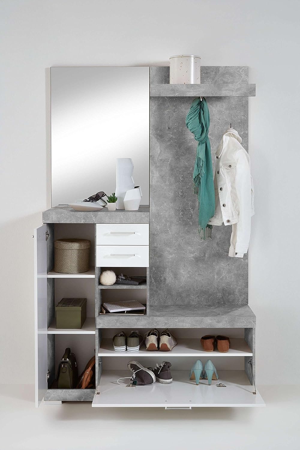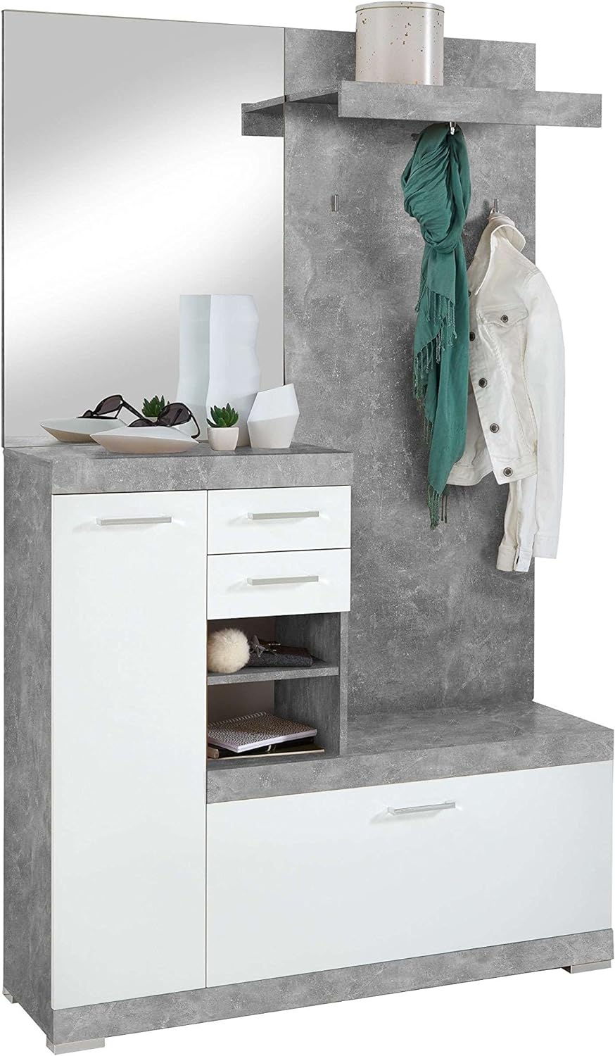 mobile ingresso entrata moderno design guardaroba appendiabiti salvaspazio corridoio specchio scarpiera cassetto mensola bianco grigio cemento armadio cassettiera T2208,198,0S