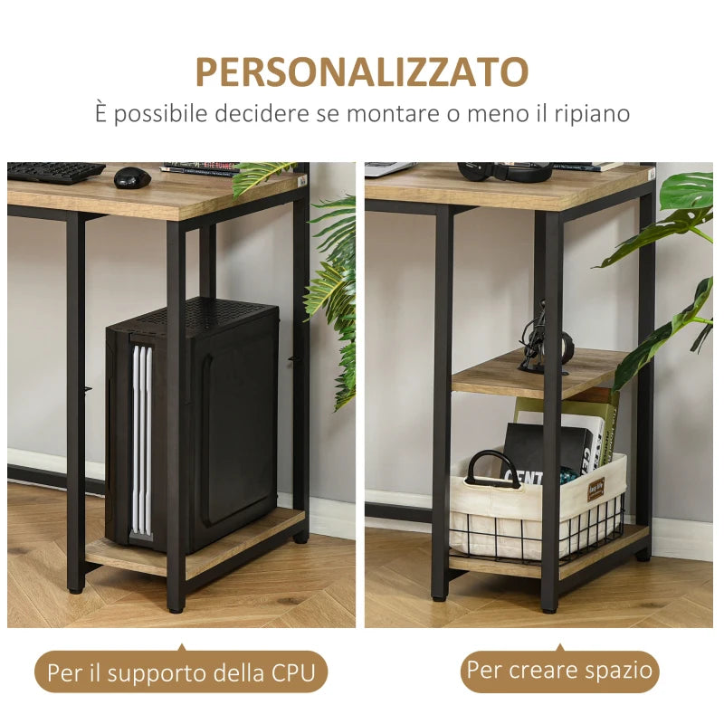 - • Due postazioni, doppia mensola rialzata per monitor, doppio scaffale laterale